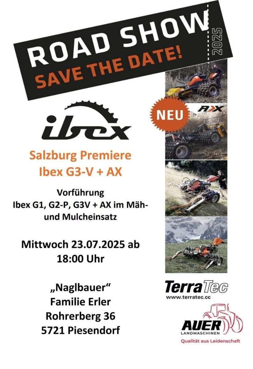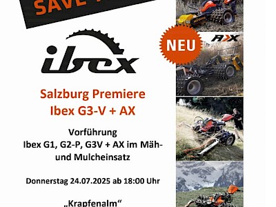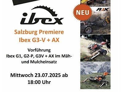 Im Juli 2025 ist es soweit: Die brandneuen Mäh- und Mulchsysteme Ibex G3-V + AX feiern ihre Salzburg-Premiere – und Auer Landmaschinen ist mit dabei!