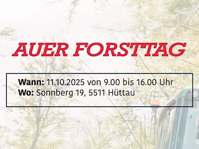 Am 11. Oktober 2025 von 9:00 bis 16:00 Uhr laden wir euch herzlich zum diesjährigen Auer Forsttag nach Sonnburg 19, 5511 Hüttau ein.