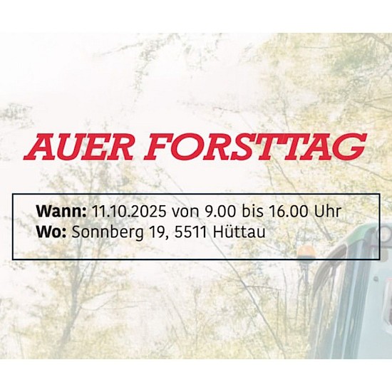 Am 11. Oktober 2025 von 9:00 bis 16:00 Uhr laden wir euch herzlich zum diesjährigen Auer Forsttag nach Sonnburg 19, 5511 Hüttau ein. Nutzt die einmalige Gelegenheit, verschiedene Forstmaschinen…