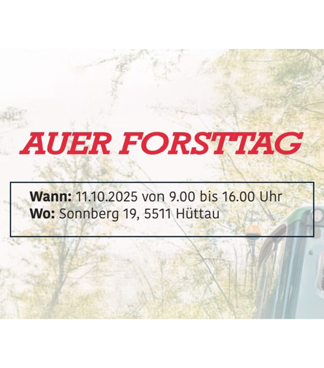 Am 11. Oktober 2025 von 9:00 bis 16:00 Uhr laden wir euch herzlich zum diesjährigen Auer Forsttag nach Sonnburg 19, 5511 Hüttau ein.